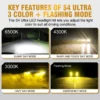 NAOEVO S4Ultra | 50W 6000LM | 3-Color LED Headlight Bulb